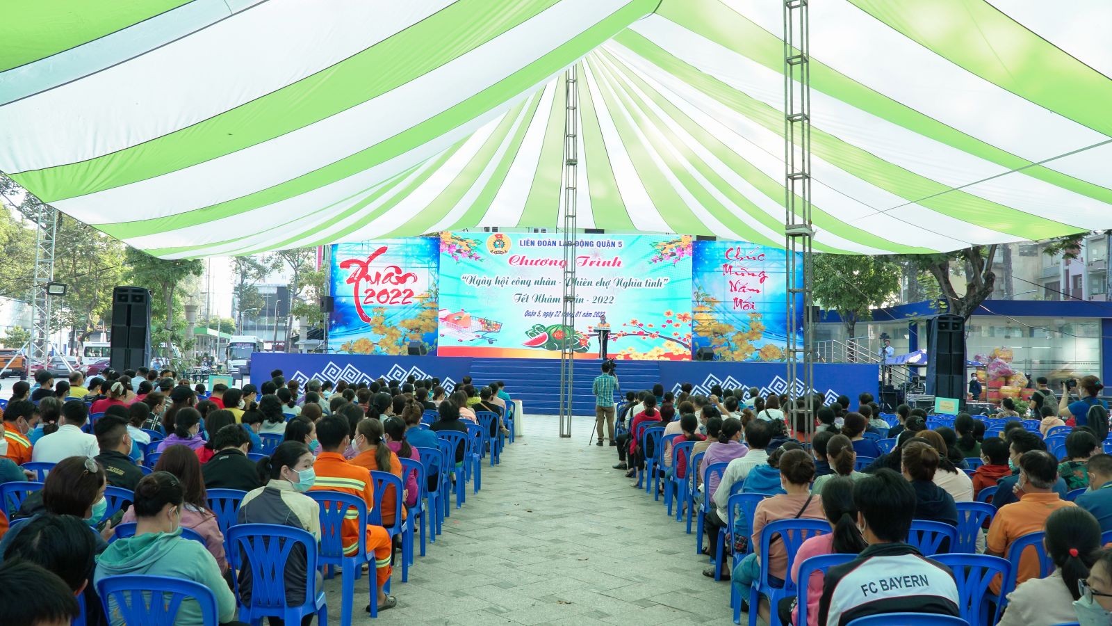 Sáng ngày 22/01/2022, Liên đoàn Lao động (LĐLĐ) quận 5 Khai mạc “Ngày hội công nhân - Phiên chợ nghĩa tình” Tết Nhâm Dần năm 2022, đây là một trong chuỗi các hoạt động chăm lo Tết, hỗ trợ, chăm lo đời sống đoàn viên Công đoàn, người lao động (NLĐ) có hoàn cảnh khó khăn dịp tết nguyên đán Nhâm Dần 2022.